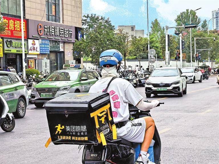 7月23日,正在郑州市区送外卖的骑手。本报记者 王向前 摄