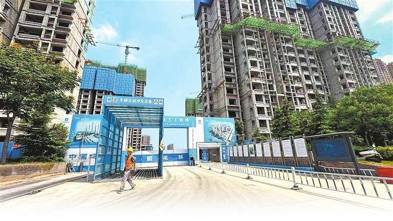 7月31日,郑州市金柳南路一棚户区改造项目,建筑工人走出工地。本报记者 王向前 摄
